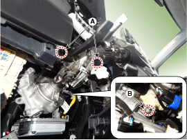 Отсоедините разъем ЭБУ MDPS (А), (В).