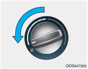 Чтобы включить A/C MAX, поверните ручку регулировки температуры в крайнее левое положение. Воздух поток направлен к верхней части тела и лицу.