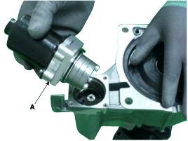 Снимите гидравлический двигатель (А), предварительно ослабив болты с помощью шестигранного ключа.