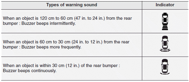 Типы предупреждающего звука и индикатора