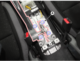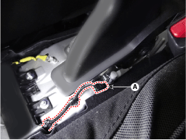 Снимите узел рычага стояночного тормоза (А) после ослабления болтов.
