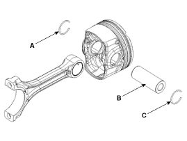 Измерьте зазор между поршневым пальцем и поршнем.