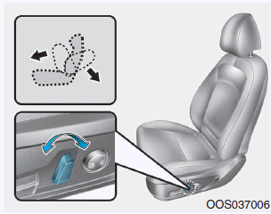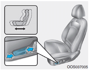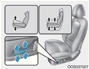 • Нажмите заднюю часть переключателя управления вверх, чтобы поднять или вниз, чтобы опустить высота подушки сиденья.