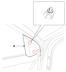 Снимите внутреннюю крышку квадранта передней двери (А).