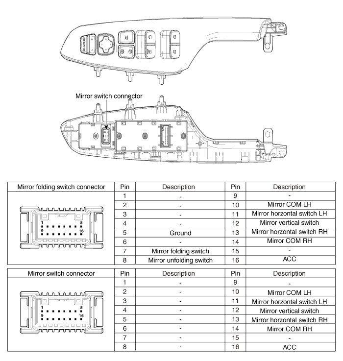 Принципиальные схемы переключателя наружного зеркала заднего вида с электроприводом