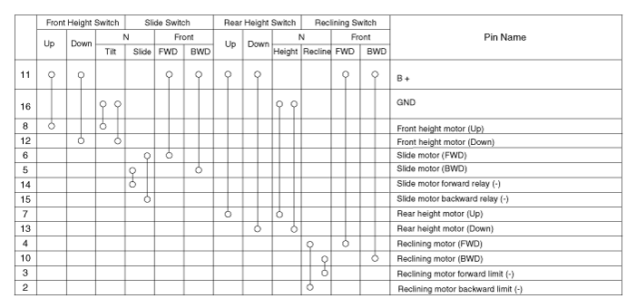 Когда переключатель сиденья с электроприводом находится в каждом положении, убедитесь, что непрерывность