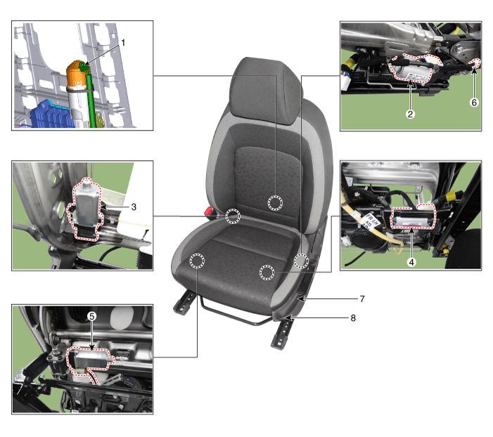6. Концевой выключатель наклона 7. Переключатель поддержки пиломатериалов 8. Переключатель сиденья |