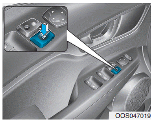 При нажатии переключателя блокировки электрического стеклоподъемника: