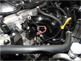 Отсоедините разъем датчика давления в рампе (А), а затем снимите