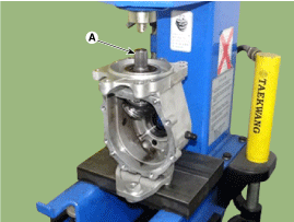 С помощью пресса снимите ведущую шестерню (А).