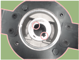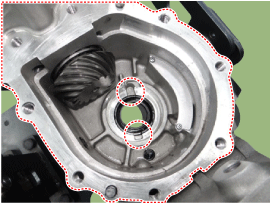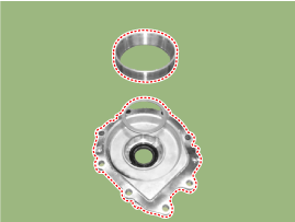 С помощью отвертки (-) снимите обойму переднего/заднего подшипника и прокладку.