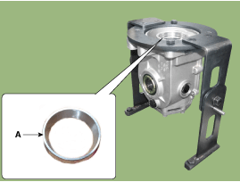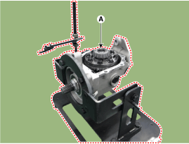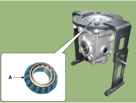 Снимите регулировочный подшипник (А) с ведущей шестерни.
