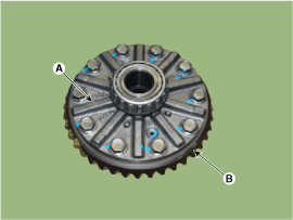 Ослабьте болты уплотнения, а затем снимите водило шестерни (А) и кольцо.