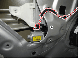 Отсоедините разъем электродвигателя стеклоподъемника задней двери (А).