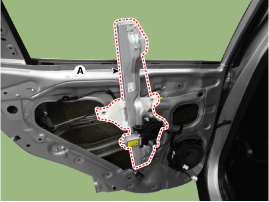 Снимите блок стеклоподъемника задней двери (А).