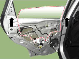 Слегка отвинтите болт и гайку крепления канала задней двери (А).