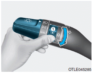 Установите переключатель света в положение фары, а затем поверните переключатель света (1) в положение заднего противотуманного фонаря.