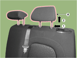 Вытяните направляющие подголовника заднего сиденья (A), зажимая их с обеих сторон.