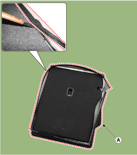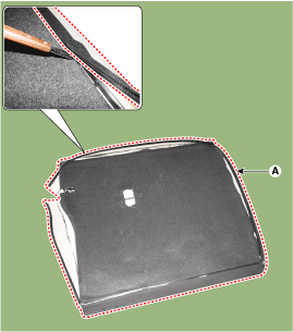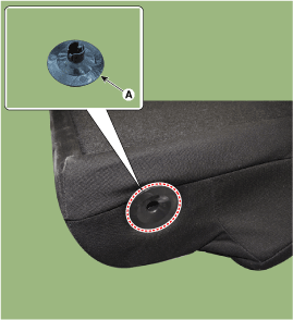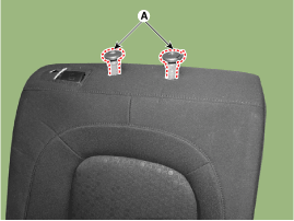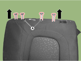 Снимите обивку спинки заднего сиденья в сборе (А) со спинки заднего сиденья.