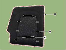 Чехол подушки заднего сиденья Компоненты и расположение компонентов