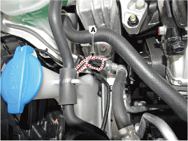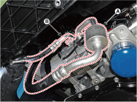 Снимите узел всасывающей и жидкостной трубки (A) с верхней части двигателя.
