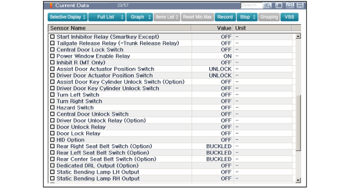 Выберите меню «Текущие данные» для поиска текущего состояния