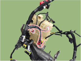 Отсоедините разъемы (A) со стороны предохранителей SJB (B).