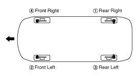Повторяйте процедуру для колеса в последовательности, показанной ниже, пока воздух не
