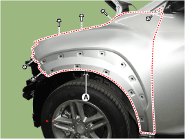 После ослабления крепежных болтов снимите крыло в сборе (А).