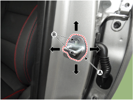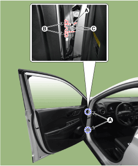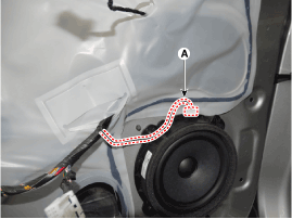 Отсоедините разъем динамика передней двери (А).