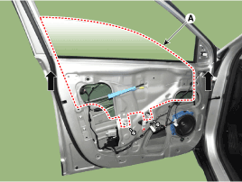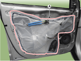 Снимите уплотнитель обивки передней двери (А).