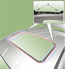 Проверьте высоту ступени между панелью крыши (А) и уплотнителем из стекла.