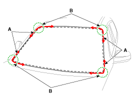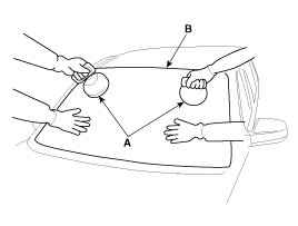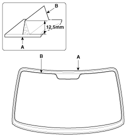 Нанесите полоску герметика (B) вокруг ветрового стекла (A).