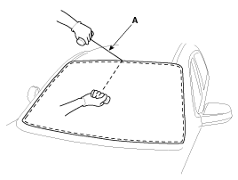 С помощью канцелярского ножа (А) аккуратно снимите молдинг ветрового стекла.