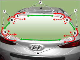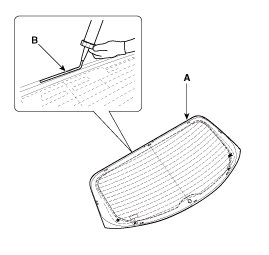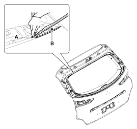 С помощью пистолета для герметика нанесите герметик (В) на край задней двери багажника.