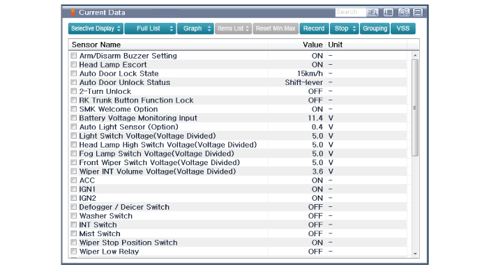 Выберите меню «Текущие данные» для поиска текущего состояния