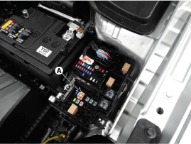 Отсоедините провод (-) аккумуляторной батареи, а затем установите реле топливного насоса.