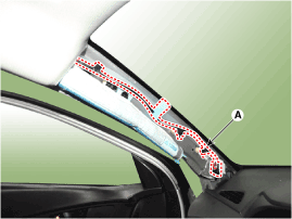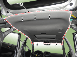 Снимите обивку крыши в сборе (А) с автомобиля через дверь багажного отделения.