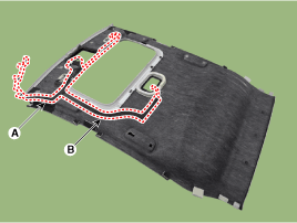 Отсоедините жгут проводов обивки крыши (А) от обивки крыши (В).