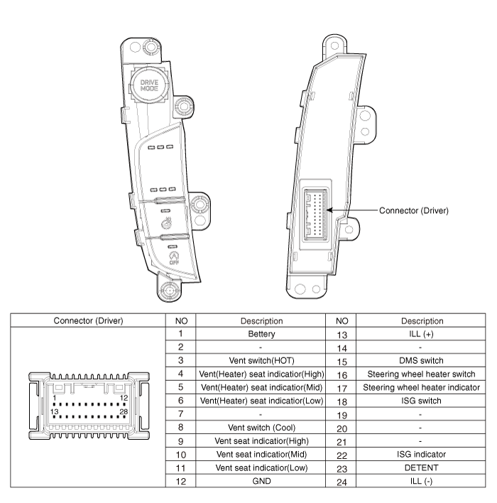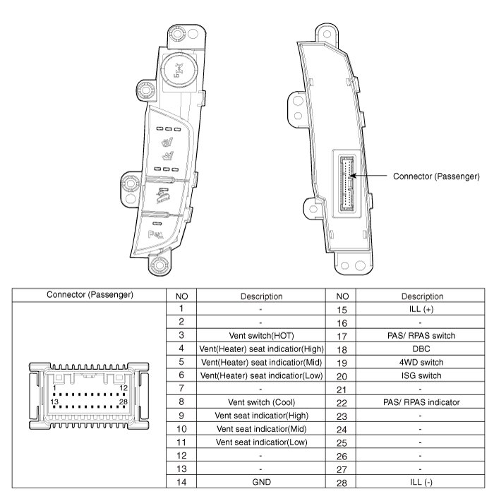 Выключатель обогрева сиденья Компоненты и расположение компонентов