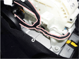 Снимите фиксирующий зажим проводки (А).