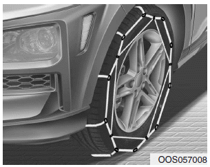 Поскольку боковины радиальных шин тоньше, чем у шин других типов, они могут быть повреждены при установке на них некоторых типов цепей противоскольжения. Следовательно, использование вместо цепей противоскольжения рекомендуется использовать зимние шины. Не устанавливайте цепи противоскольжения на автомобили с алюминиевыми дисками; если это неизбежно, используйте проволочную цепь. Если следует использовать цепи противоскольжения, использовать оригинальные запчасти HYUNDAI и устанавливать цепь после просмотрев инструкции, прилагаемые к цепям противоскольжения. Повреждение вашего автомобиля вызванное неправильным использованием цепи противоскольжения, не покрывается производителем вашего автомобиля. гарантия.