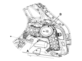 Снимите динамик задней двери (B), предварительно отсоединив разъем (A).