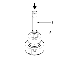 Нажмите на стопор (A) с помощью гнезда (B).