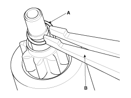 Снимите стопорное кольцо (А) с помощью плоскогубцев (В).
