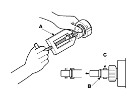 Отсоедините стопор (А), обгонную муфту (В), внутреннюю шестерню (С).
