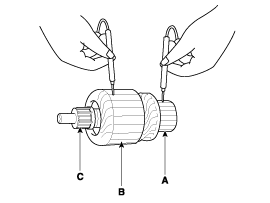вал (С). При наличии непрерывности замените якорь.
