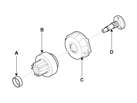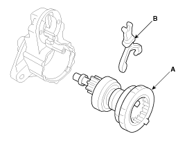 Если ведущая шестерня стартера изношена или повреждена, замените обгонную муфту.