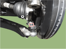 Ослабьте гайку нижнего рычага (А) и снимите шаровой шарнир нижнего рычага.