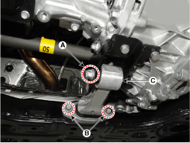 Ослабьте крепежные болты и снимите стабилизатор поперечной устойчивости (А).